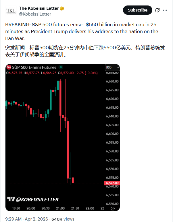 “令人费解”的演讲:标普期指25分钟蒸发5500亿美元