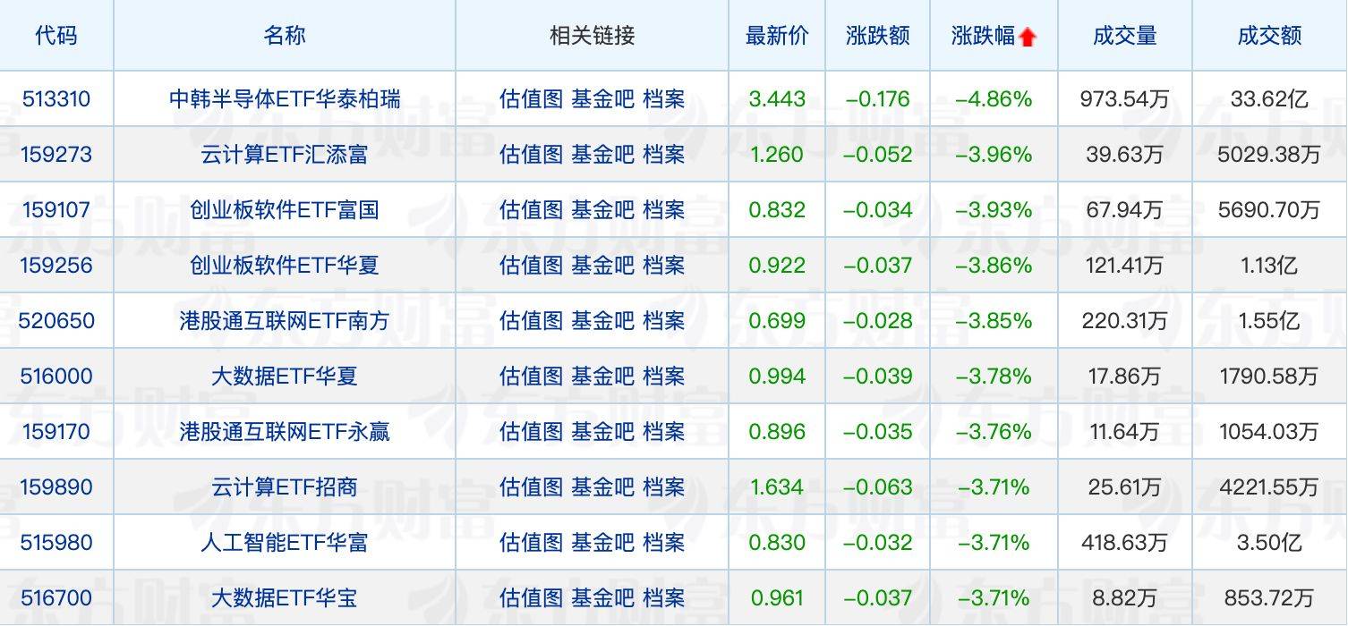 下跌方面,中韩半导体ETF华泰柏瑞跌超4%。