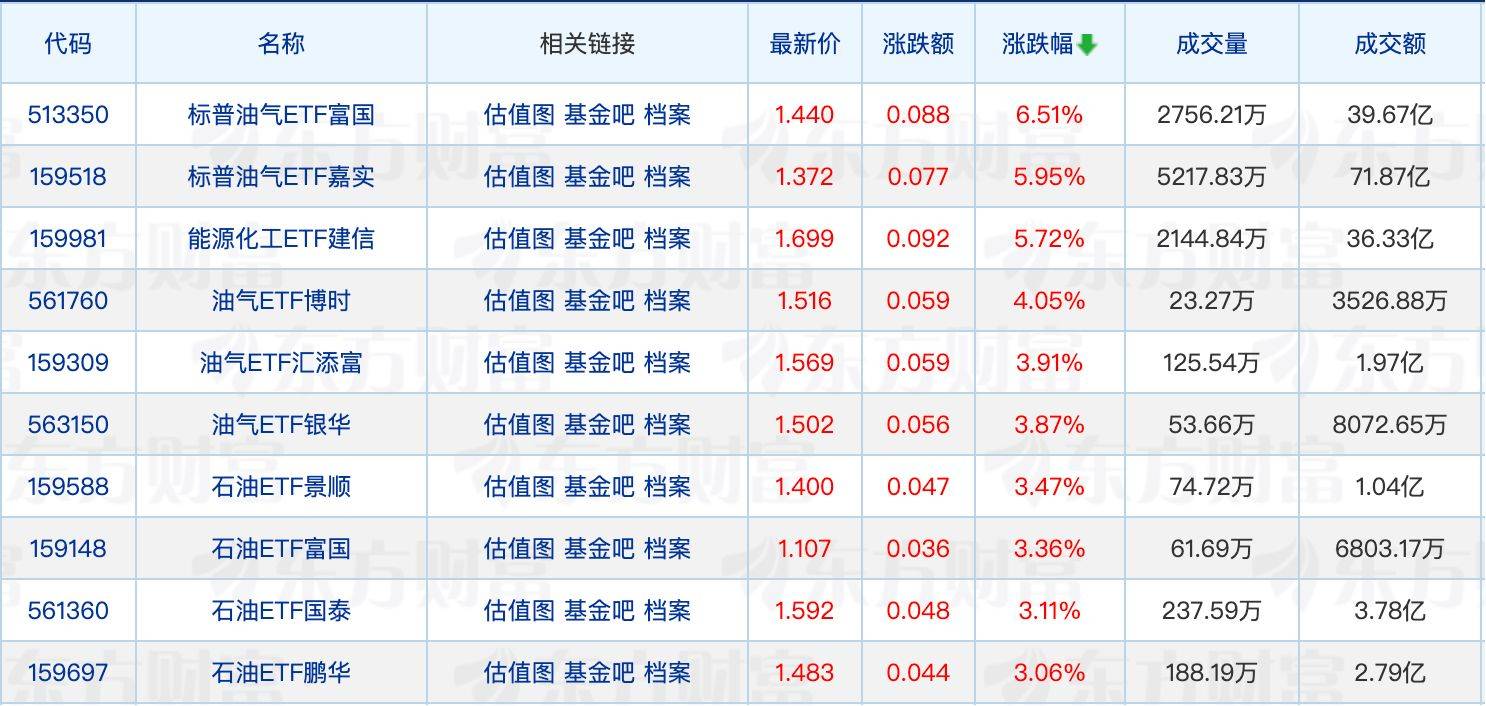 ETF涨跌幅方面,标普油气ETF富国涨超6%。