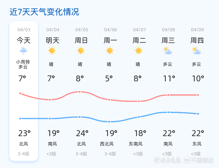 明天4月4日,泰安市天气将转晴,气温有所下降,预计最低气温7摄氏度,最高气温19摄氏度,风向转为南风,风力较今日有所减弱。市民可以抓住晴好天气进行户外活动,享受春日阳光。