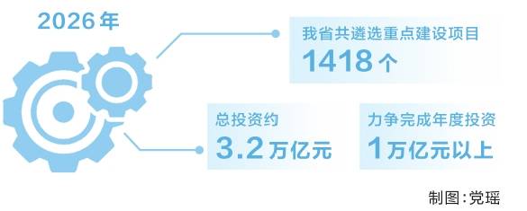 本报讯(全媒体记者 宋敏)4月2日,记者从省发展改革委获悉,2026年河南省重点建设项目名单新鲜出炉,我省共遴选重点建设项目1418个、总投资约3.2万亿元,力争完成年度投资1万亿元以上。