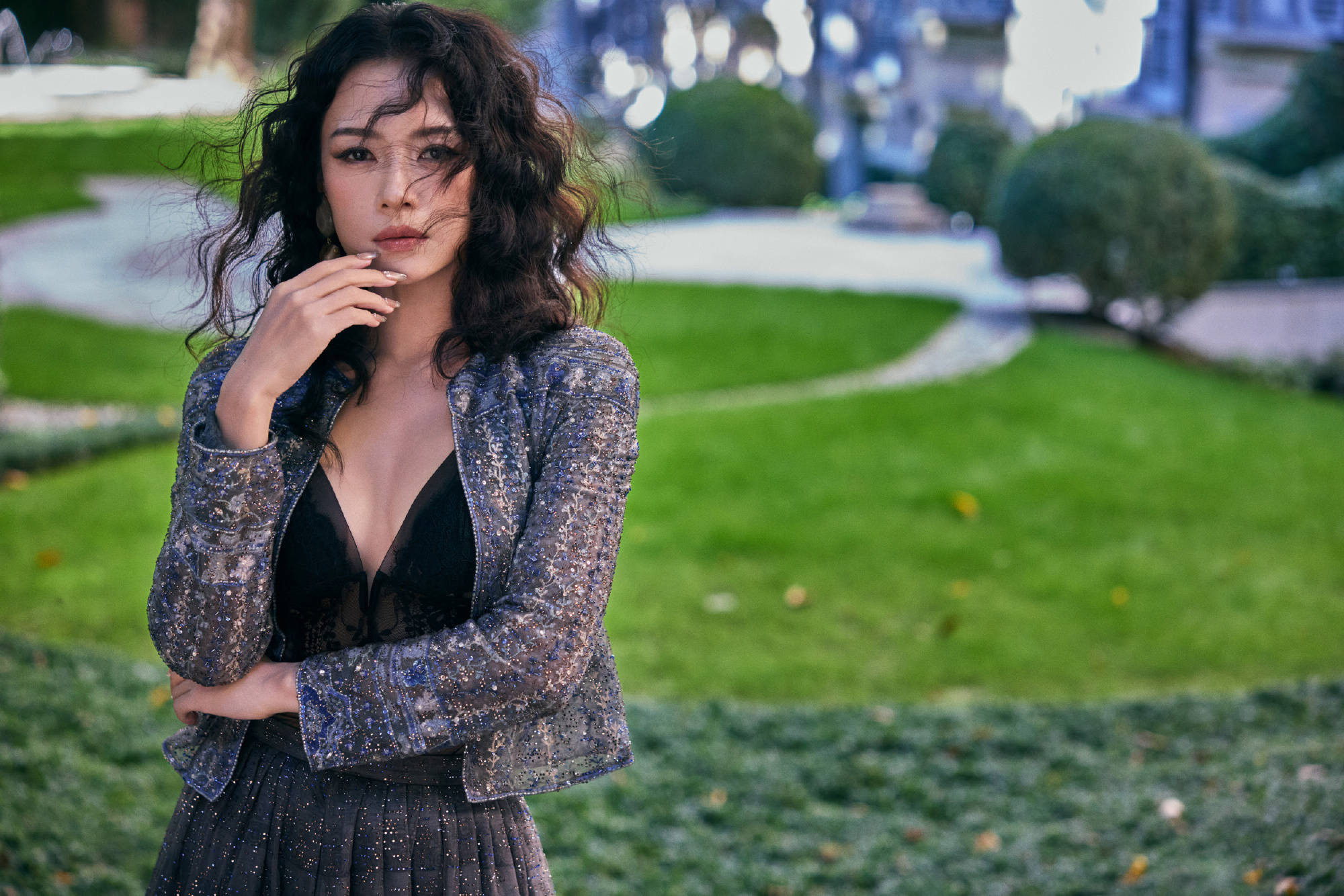 章子怡穿搭时髦又性感。