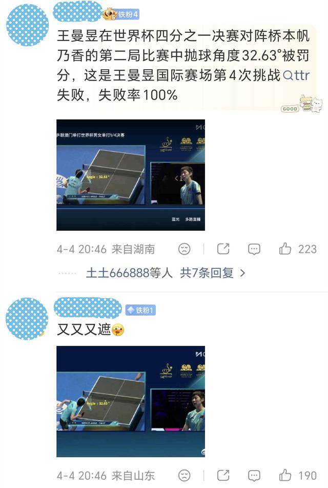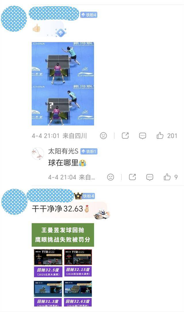 竞技体育从来不是完美无缺的表演。每一位顶尖运动员都在规则允许的极限范围内探索技术的边界,被裁判判罚、被鹰眼检测出偏差,都是竞技体育中再正常不过的事情。王曼昱赢了球,坦然接受了判罚,继续在赛场上奋力拼搏,这份职业态度本该获得尊重。而那些躲在屏幕后面冷嘲热讽、攻击运动员的人,才是真正应该被谴责的对象。三观不正者,如何谈体育?