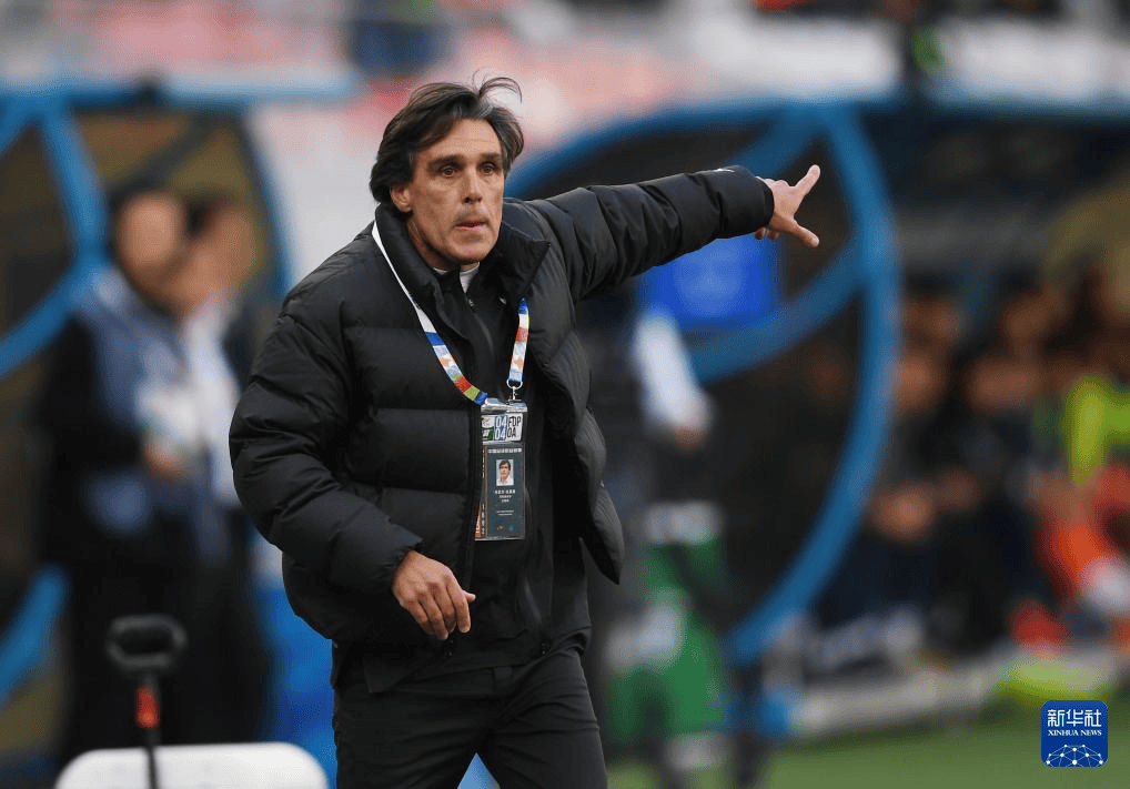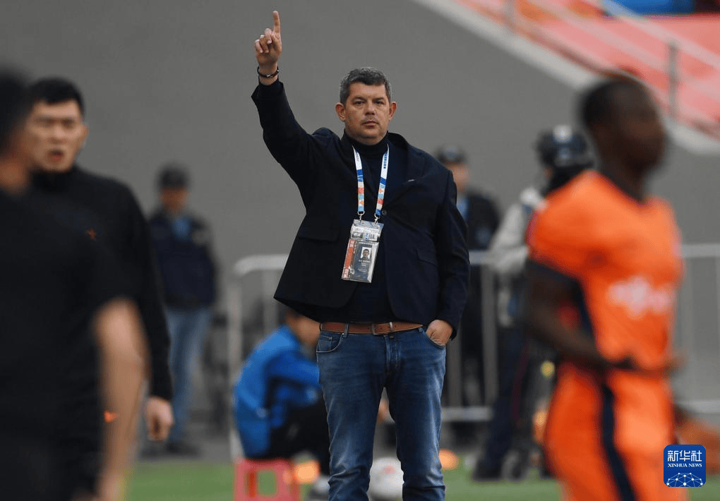 4月4日,青岛海牛队主教练米兰(中)指导球员。