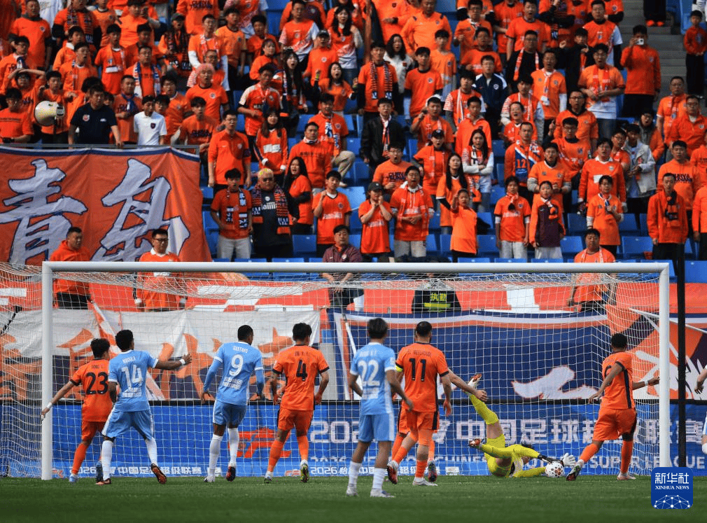4月4日,在山东青岛举行的2026赛季中国足球超级联赛第四轮比赛中,青岛海牛队主场1比0战胜河南队。