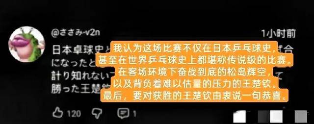 作为对手,日本媒体与网民对王楚钦的评价,堪称“封神级”,整体呈现出“赞松岛、服王楚钦、忧差距”的复杂心态——既为自家选手的进步骄傲,也对王楚钦的实力感到敬畏。