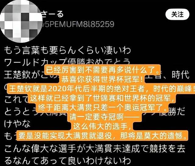 这些来自不同国家、不同文化背景的球迷,用最直白的语言,表达了对王楚钦的认可。