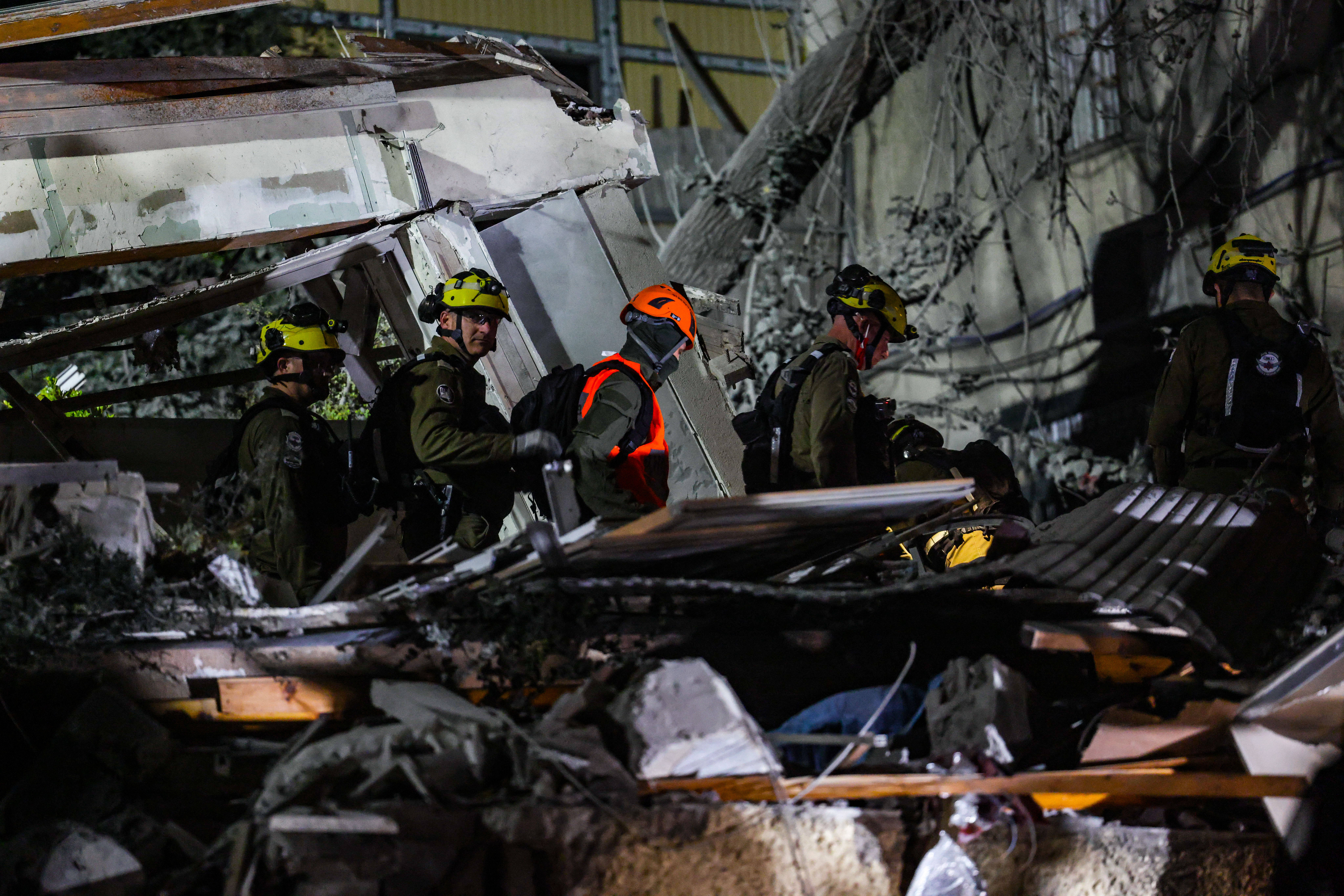 4月5日,在以色列北部城市海法,应急反应人员在遭袭现场工作。 新华社/基尼图片社