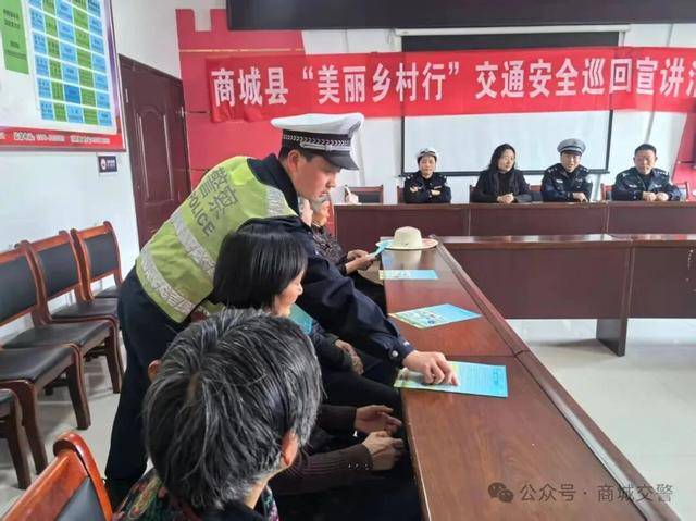 为筑牢农村道路交通安全防线,切实解决群众出行急难愁盼问题,信阳商城县交管大队走进辖区河凤桥镇新桥村,开展4月份“美丽乡村行”交通安全巡回宣讲活动,将安全知识与便民服务送到群众家门口。