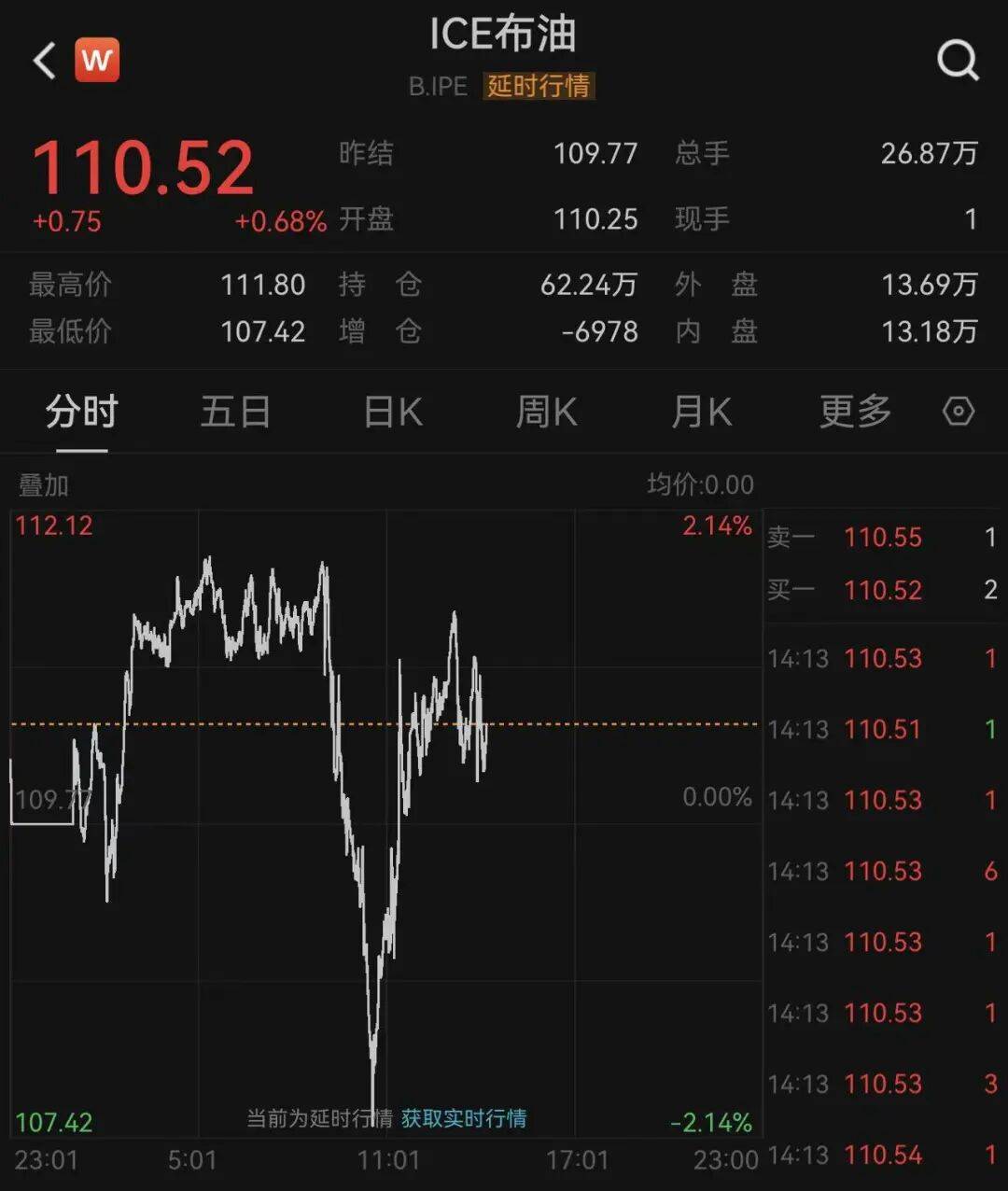 受此消息影响,NYMEX WTI原油、ICE布油短线拉升。北京时间4月7日21:28,NYMEX WTI原油涨2.65%,报115.39美元/桶;ICE布油涨0.68%,报110.52美元/桶。