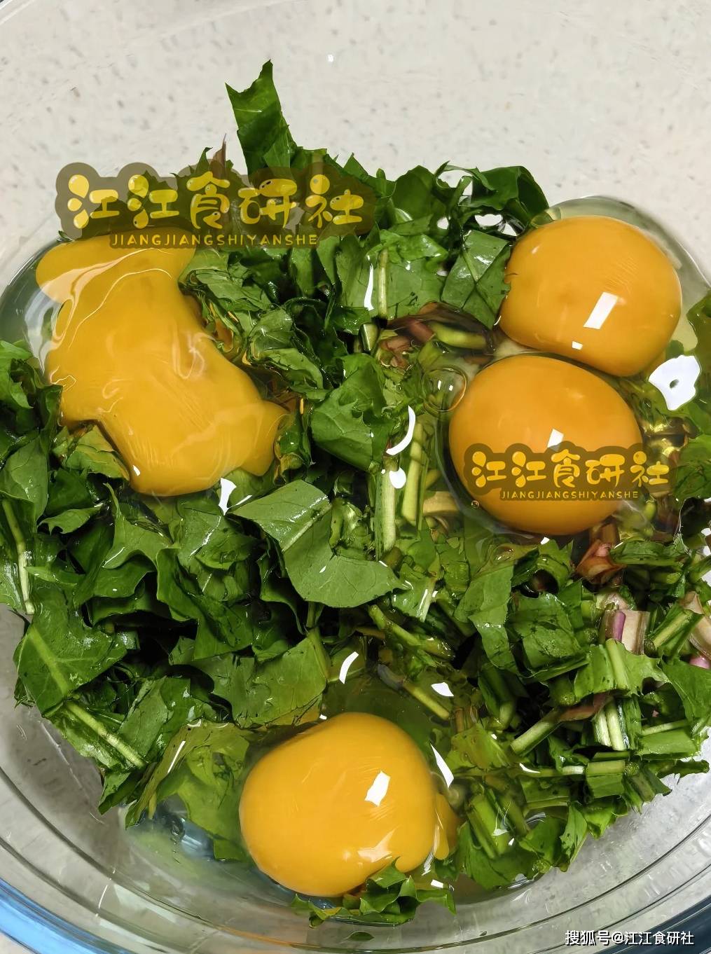 鲜嫩蒲公英叶片 200克、鸡蛋 3个。