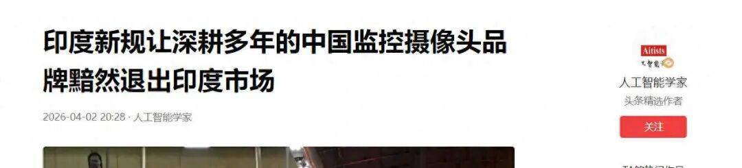 2026年4月初,印度又举起镰刀,把一批在印度市场深耕多年的中国品牌正式挡在门外,给中资入印泼了一盆冷水。