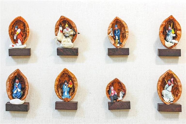 核桃藏天地,微型面塑于毫厘之间塑就生动万象。