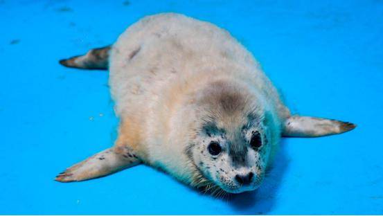 刚满月的斑海豹幼崽