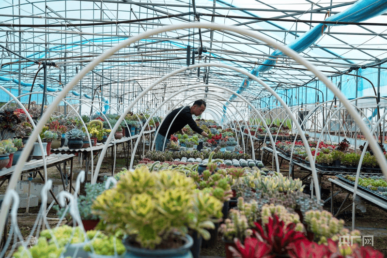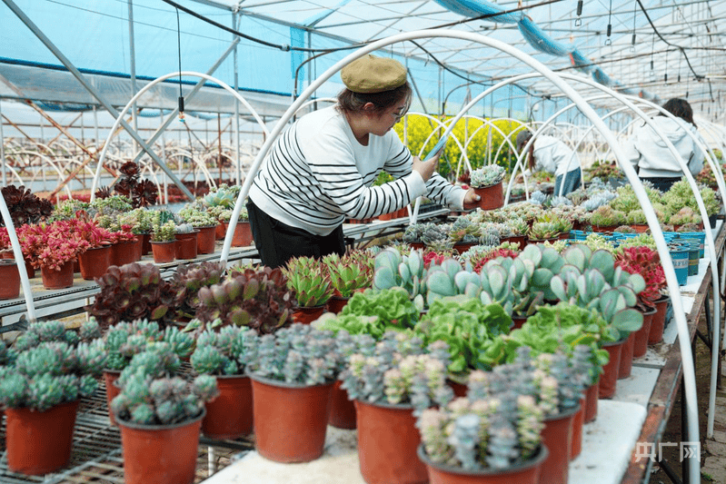 央广网焦作4月8日消息(记者 张丽娜 通讯员 韩田田 张文博)春风送暖,万物勃发。眼下,在河南焦作沁阳市王曲乡杨村的小杰园艺基地里,10座温室大棚整齐排列,棚内上百种多肉植物层层叠叠、生机盎然。各式盆景多肉不仅吸引着周边游客慕名前来打卡选购,更通过电商直播的镜头“飞”往全国各地,成为当地乡村振兴路上一道亮眼的风景。