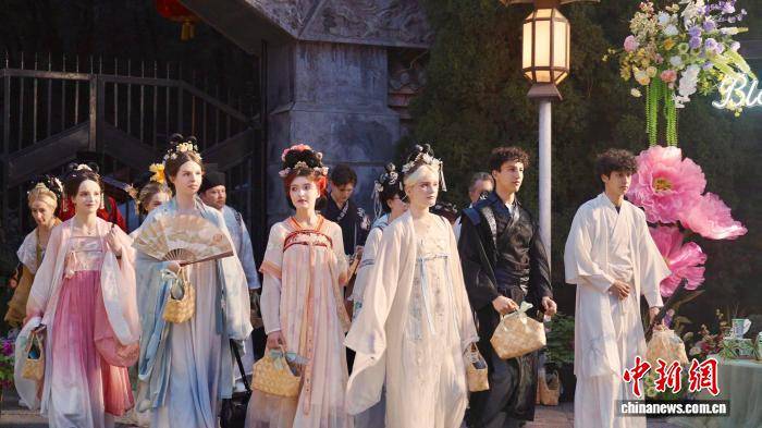 近日,河南洛阳,来自英国、美国、德国等9个国家的20余位外籍友人现身“牡丹霓裳·万象华章”汉服文化雅集暨“花开万象”汉服复原大秀活动现场。4位外籍友人与30余位模特联袂呈现四幕汉服大秀,以生动演绎诠释华服之美,展现东方美学的艺术魅力。图为外籍友人身着汉服在洛阳游览。洛阳国际传播中心 供图