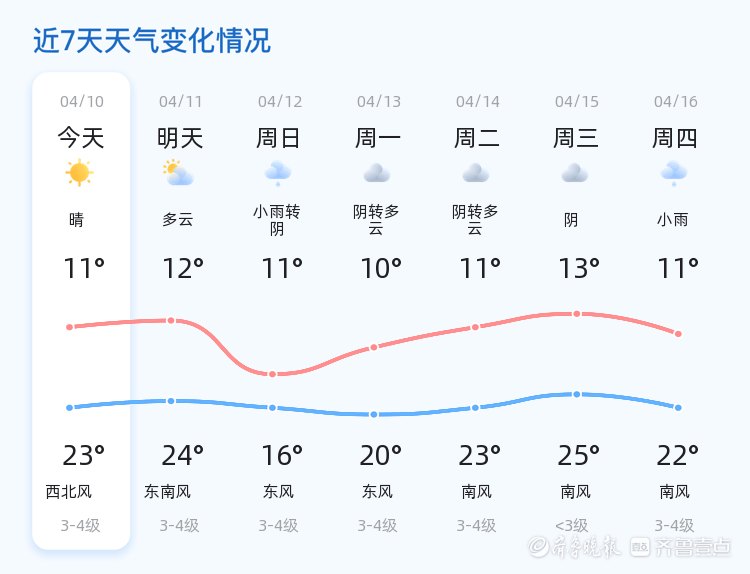 明天4月11日,临沂天气转为多云,气温略有上升,最高气温可达24℃,最低气温12℃,风向将由东南风主导,风力3-4级。与今天相比,天气状况有所变化,但整体较为平稳。