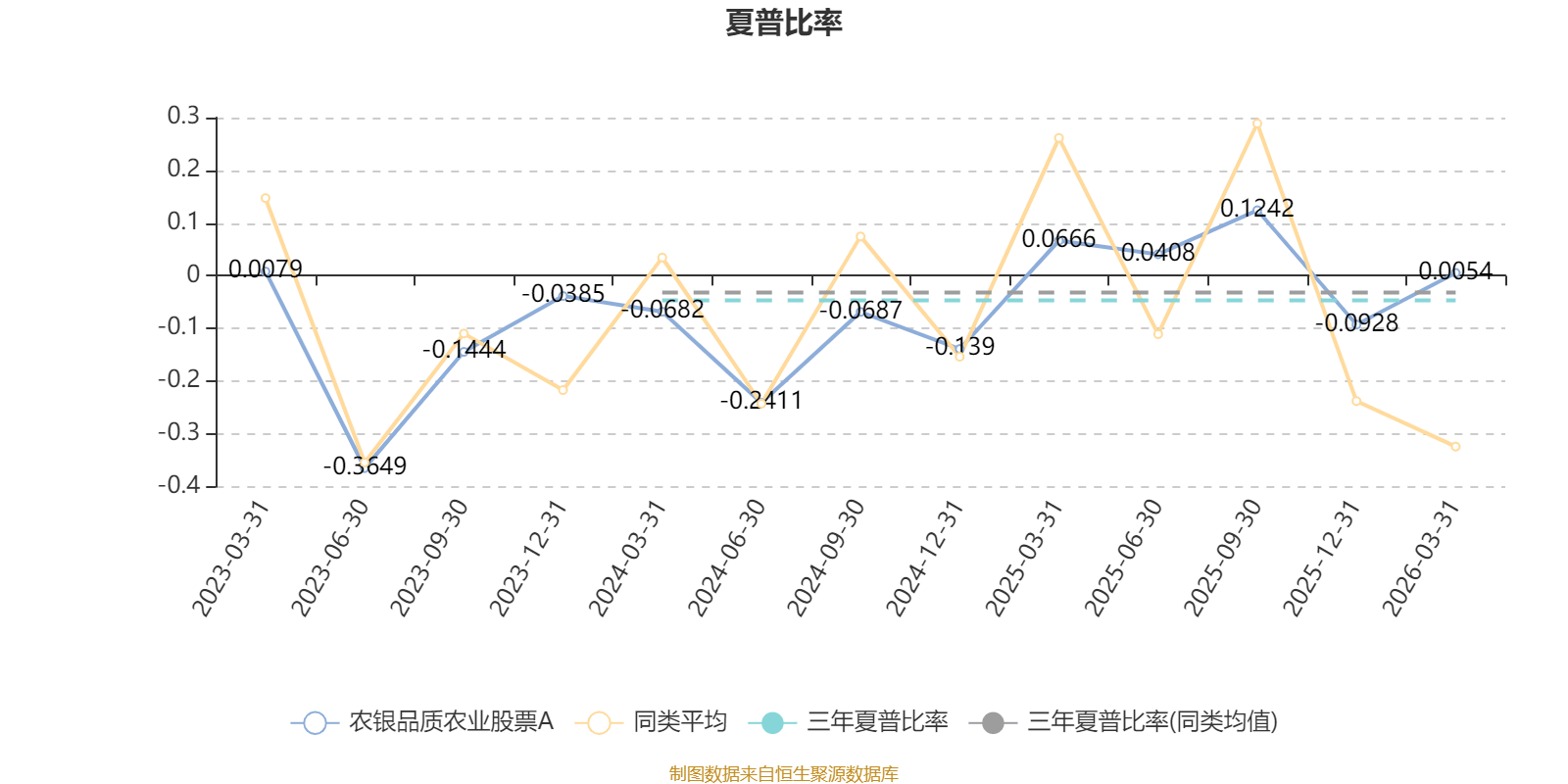 截至3月31日,基金近三年夏普比率为-0.0466,位于同类可比基金21/41。