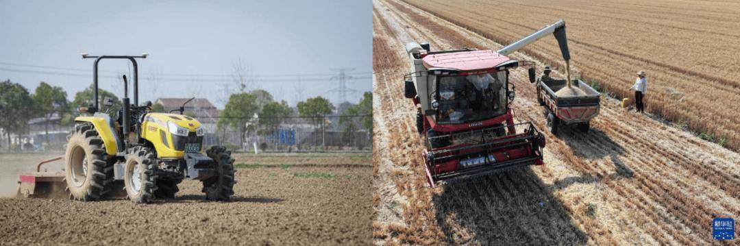 图5、旋耕机和联合收割机(图片来源:新华社)
