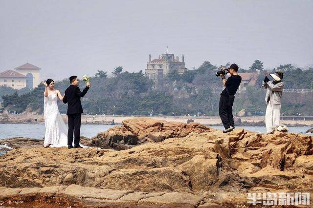 4月11日,青岛迎来晴好周末,气温舒适,海风轻柔。沿海一线处处是踏青赶海的市民游客。退潮时分,沙滩上聚集了不少拎着小桶、手持铲子“赶海”的人。礁石上、沙滩边、木栈道旁,随处可见身着白纱的新人在摄影师的指导下定格幸福瞬间。而更多的是漫步观景的市民,悠闲地享受着这静好的春光。