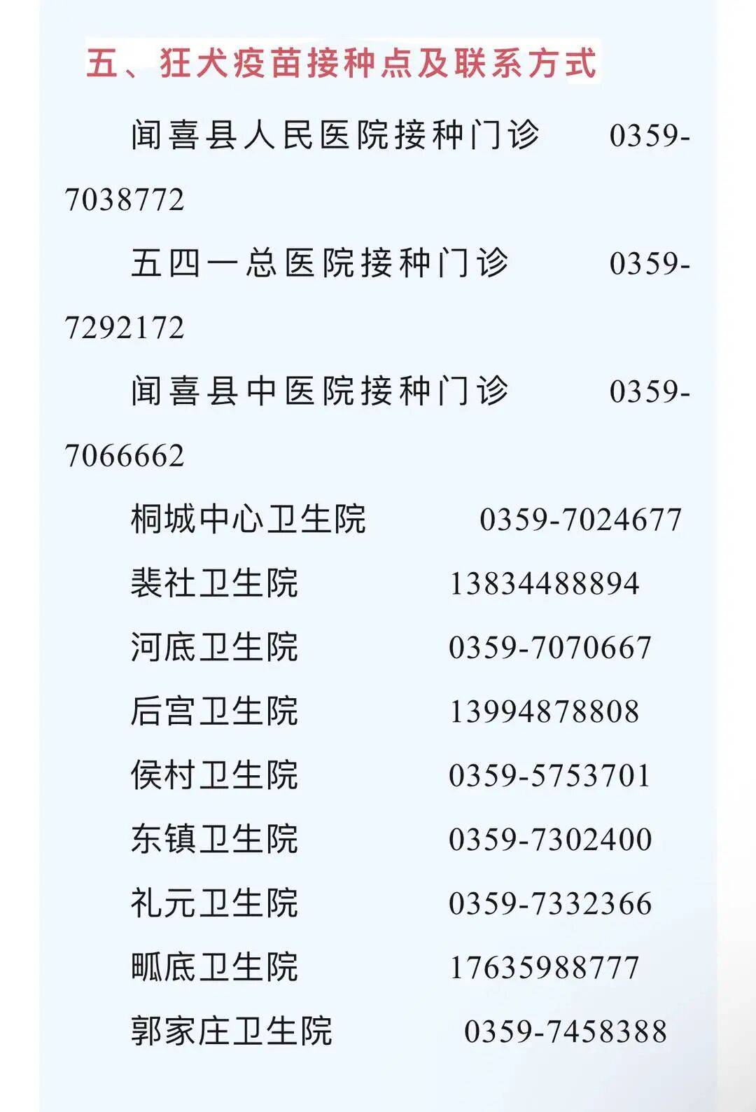 闻喜县狂犬疫苗接种点,五四一总医院与礼元卫生院位列其中。图据“健康闻喜”