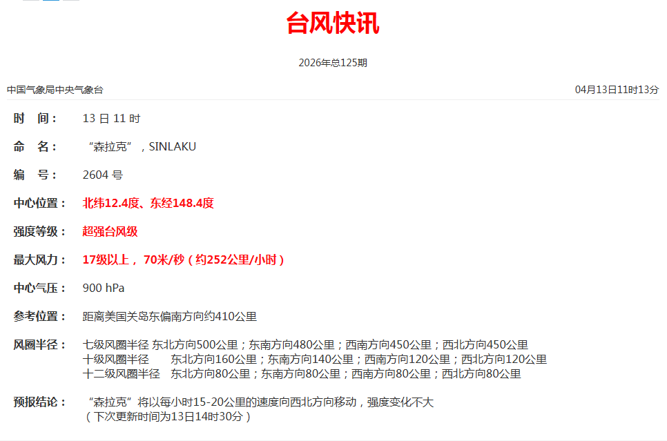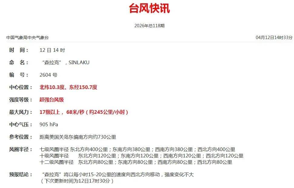 昨天台风“森拉克”升级为超强台风