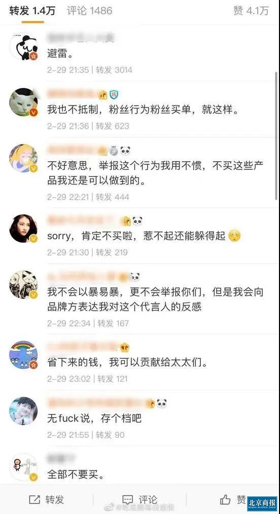 “他代言,我就不买,粉丝行为偶像买单。”