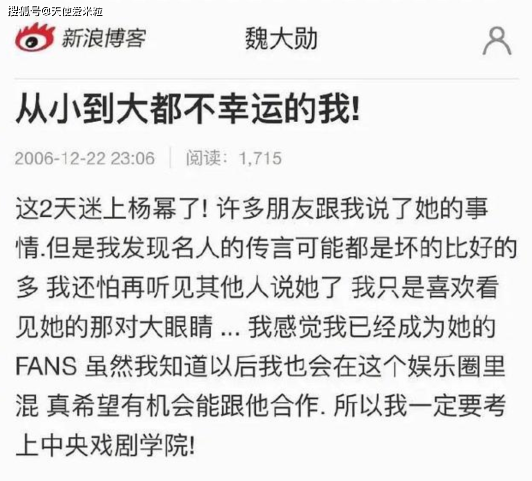 早在2019年12月,就有媒体曝光了两人绯闻,更早的2006年,只有 19岁的魏大勋还是中央戏剧学院表演系的预备役,就已经在社交媒体公开表示自己是杨幂粉丝,更把女生当成自己追赶的事业目标。