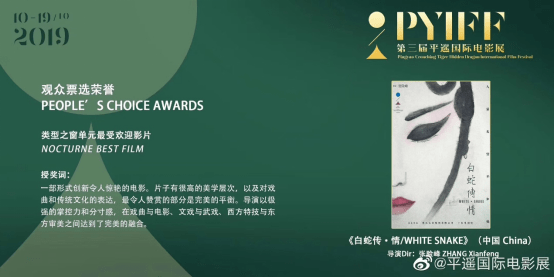 《白蛇传·情》获得第三届平遥国际电影展类型之窗单元“最受欢迎影片”。