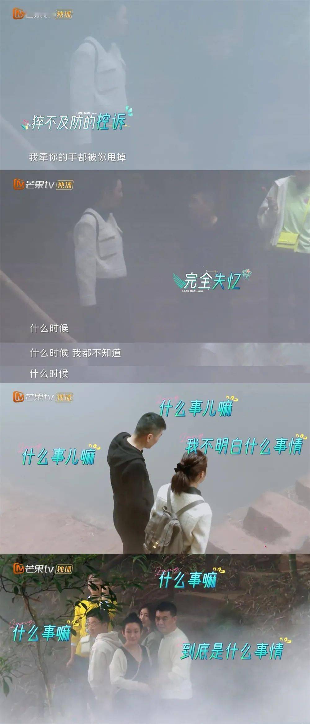 但婚姻里也有很糟心的部分。比如旅途第一天,蒋勤勤几乎是在闹情绪的心塞中度过的。邹凯与周婕这对小夫妻也是一路小吵个不停。
