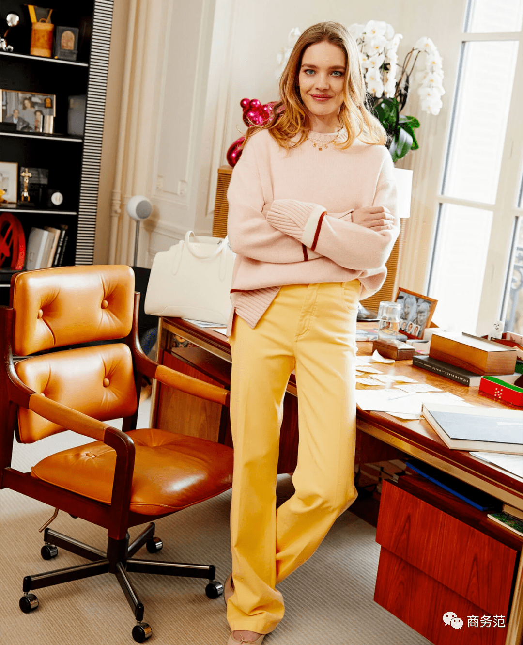 在法国Vogue给太子妃拍摄的大片中,她再次穿上了全套Loro Piana新品,这一季新品主打的杏黄色长裤、毛衣,衬得人明媚又温柔,高级感十足。