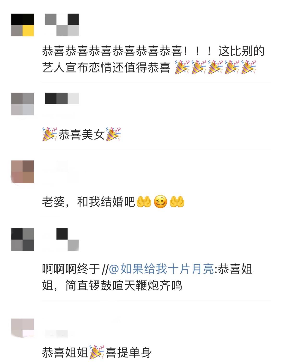 不过在离婚消息官宣后,网友们纷纷向佟丽娅表达了恭喜: