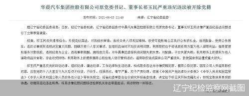 公告显示,经查祁玉民丧失理想信念,无视党纪国法,对抗组织审查;违反中央八项规定精神,收受可能影响公正执行公务的礼金,违规配备、使用公务用车;违反议事规则违规决定重大问题,隐瞒不报个人有关事项,在组织函询时不如实说明问题,利用职权在干部选拔任用方面为他人谋取利益;借用管理和服务对象钱款,违规经商办企业,违规兼职取酬,搞钱色交易;对华晨集团虚报利润问题失职失责;对配偶、子女失管失教;利用职务上的便利为他人谋取利益并索取、非法收受财物;利用职务上的便利挪用公款给他人进行营利活动;滥用职权造成国有公司严重损失,致使国家利益遭受重大损失。