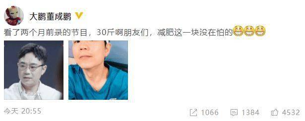 网易娱乐6月23日报道 6月22日,大鹏在微博晒出对比照,透露自己2个月瘦了30斤:“看了两个月前录的节目,30斤啊朋友们,减肥这一块没在怕的!”晒出的照片中,大鹏仰头自拍,脸部线条分明,双下巴也消失了。网友纷纷询减肥秘籍:“哥怎么瘦的???教教大伙儿呗!”返回搜狐,查看更多